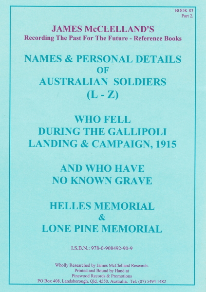 Names & personal details of Aust Soldiers who fell during the Gallipoli Landing & Campaign, 1915 & who have No Known Grave. Helles Memorial & Lone Pine Memorial.